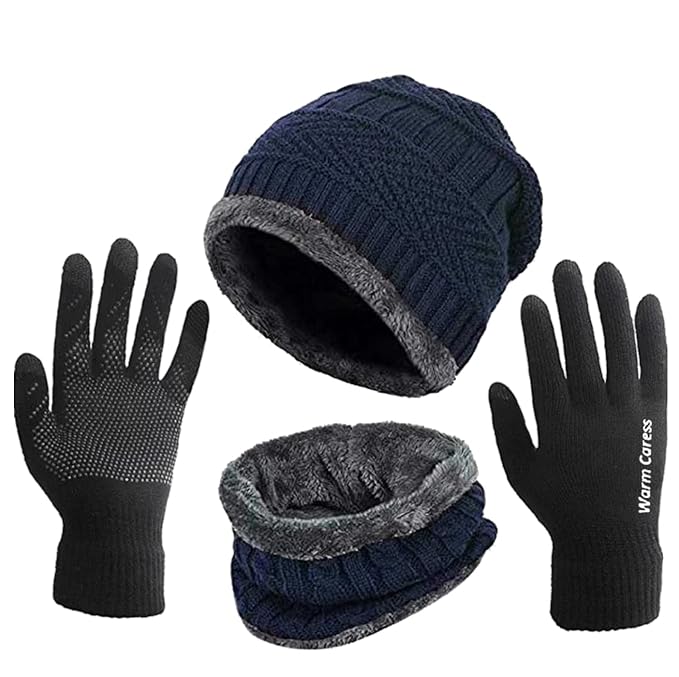 X-LENT Winter Woolen Cap, Neck Warmer Scarf with Tuch Gloves Set| Beanie Style| 3 Piece Set| Warm Winter Neck Scarf, Tuch Gloves and caps Suitable for Men and Women|Stylish (BLACK) (BROWN)